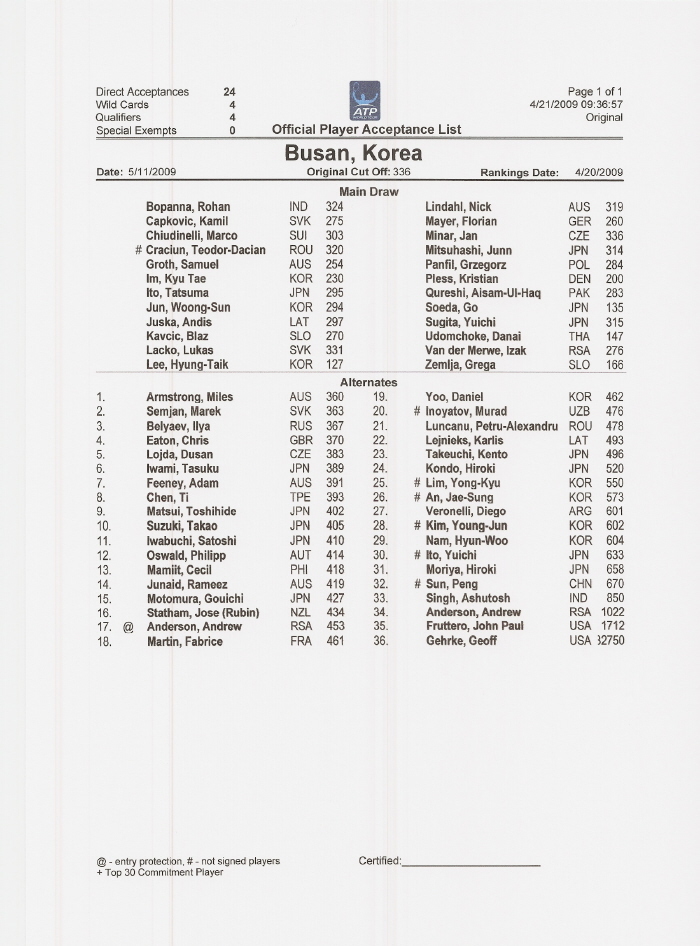 Cut Off: 336 Rankings Date: 4/20/2009