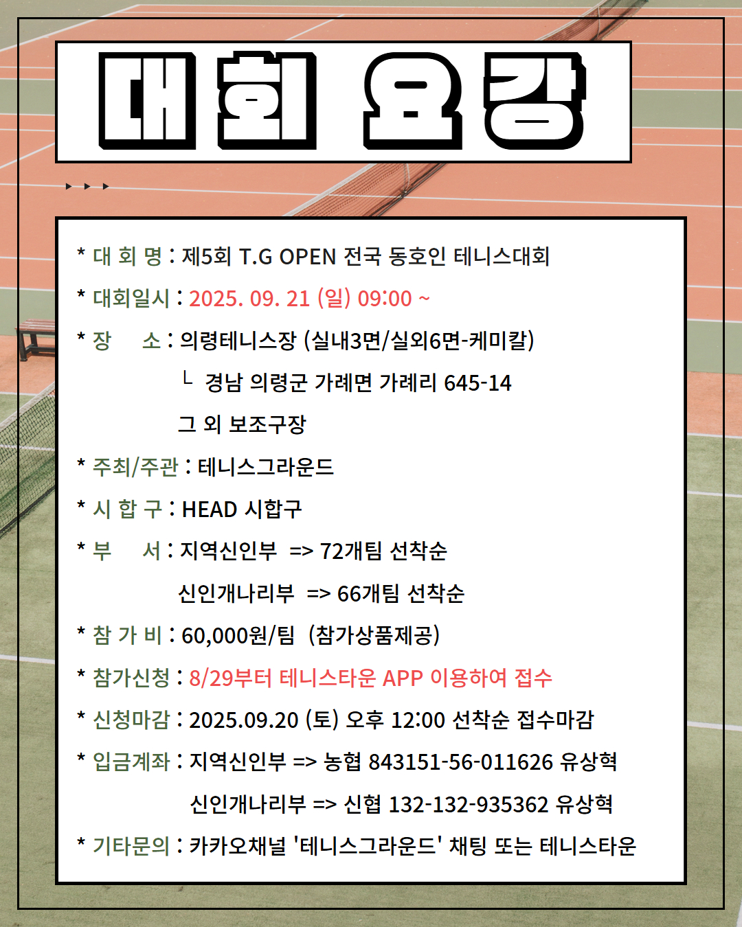 Á¦5ȸ T.G OPEN Àü±¹µ¿È£ÀÎÅ״Ͻº´ëȸ
