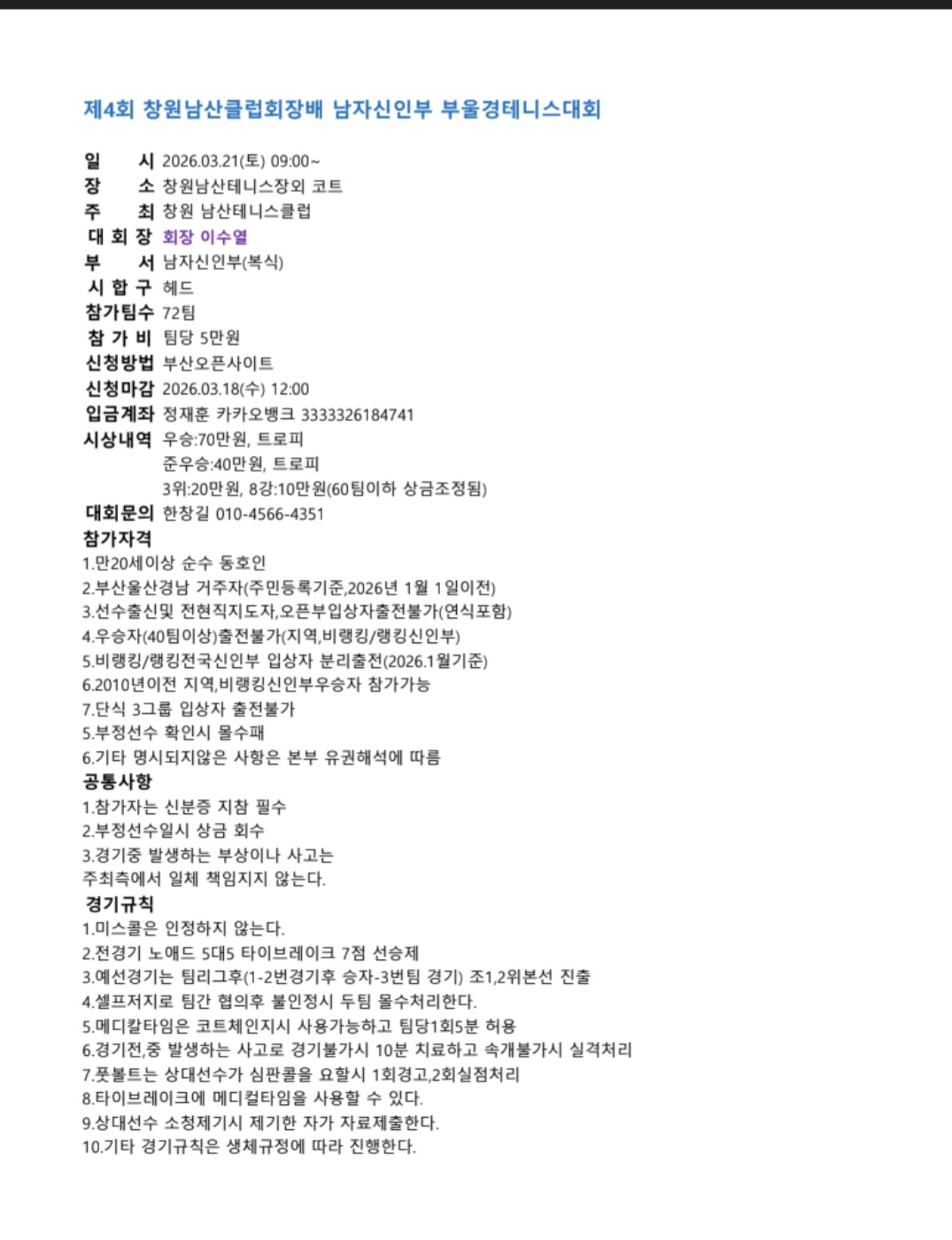 Á¦4ȸ â¿ø³²»êŬ·´È¸Àå¹è ³²ÀÚ½ÅÀκΠºÎ¿ï°æÅ״Ͻº´ëȸ Âü°¡ÆÀ¼ö ¼öÁ¤¿äû(72->78ÆÀ)[0]
