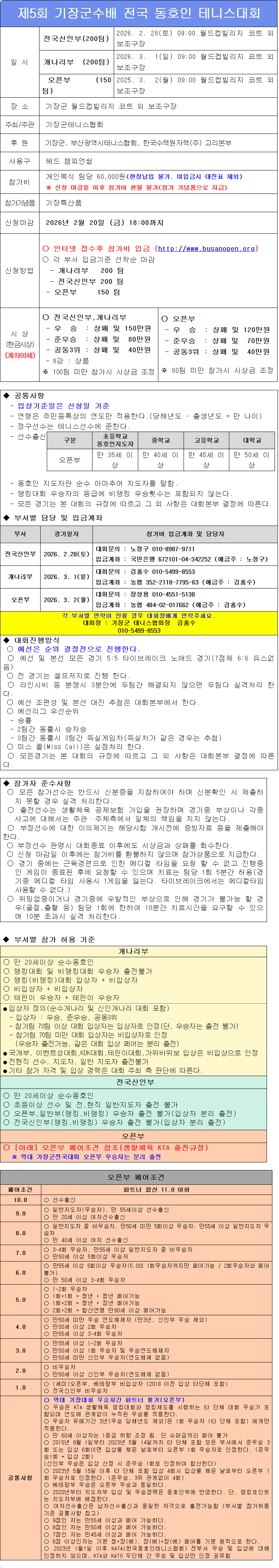 Á¦5ȸ ±âÀ屺¼ö¹è Àü±¹ µ¿È£ÀÎ Å״Ͻº´ëȸ - 2/28(Åä)~3/2(¿ù)[0]