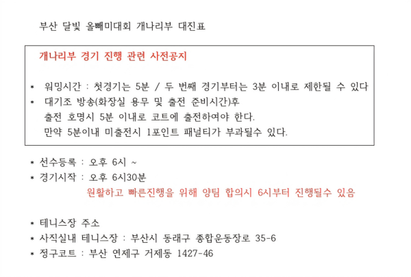 Á¦3ȸ ºòº£¾î Å״Ͻº´ëȸ °³³ª¸®ºÎ ´ëÁøÇ¥[1]