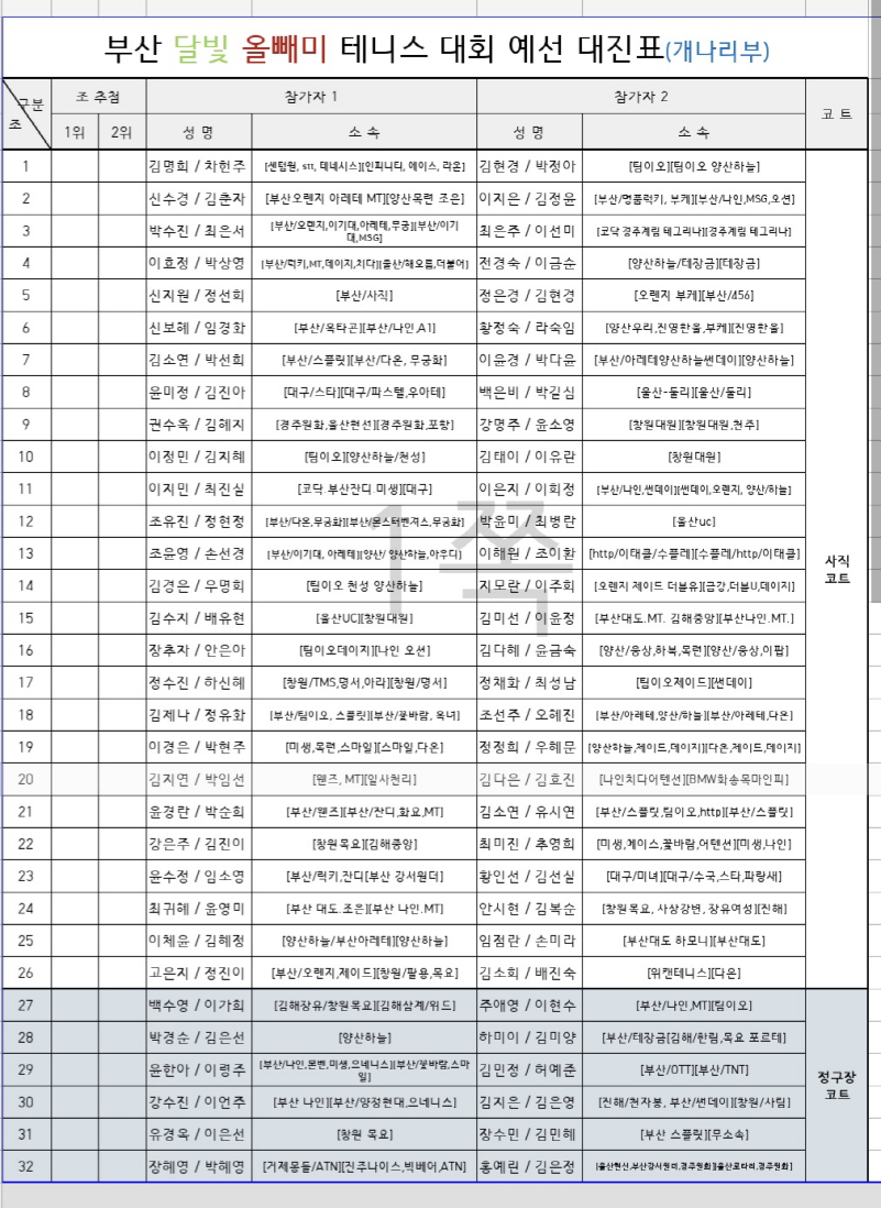 Á¦2ȸ ¾ç»ê½Ã Å״ϽºÇùȸ ¶óÀÌ¡½ºÅ¸ ³²ÀںΠ´ëÁøÇ¥[0]