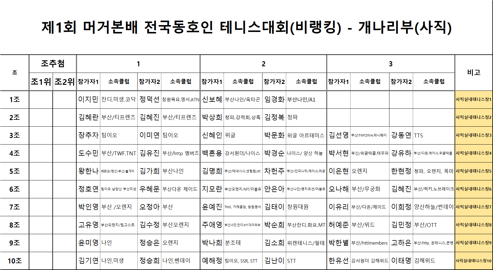 Á¦2ȸ ¾ç»ê½Ã Å״ϽºÇùȸ ¶óÀÌ¡½ºÅ¸ ³²ÀںΠ´ëÁøÇ¥[0]
