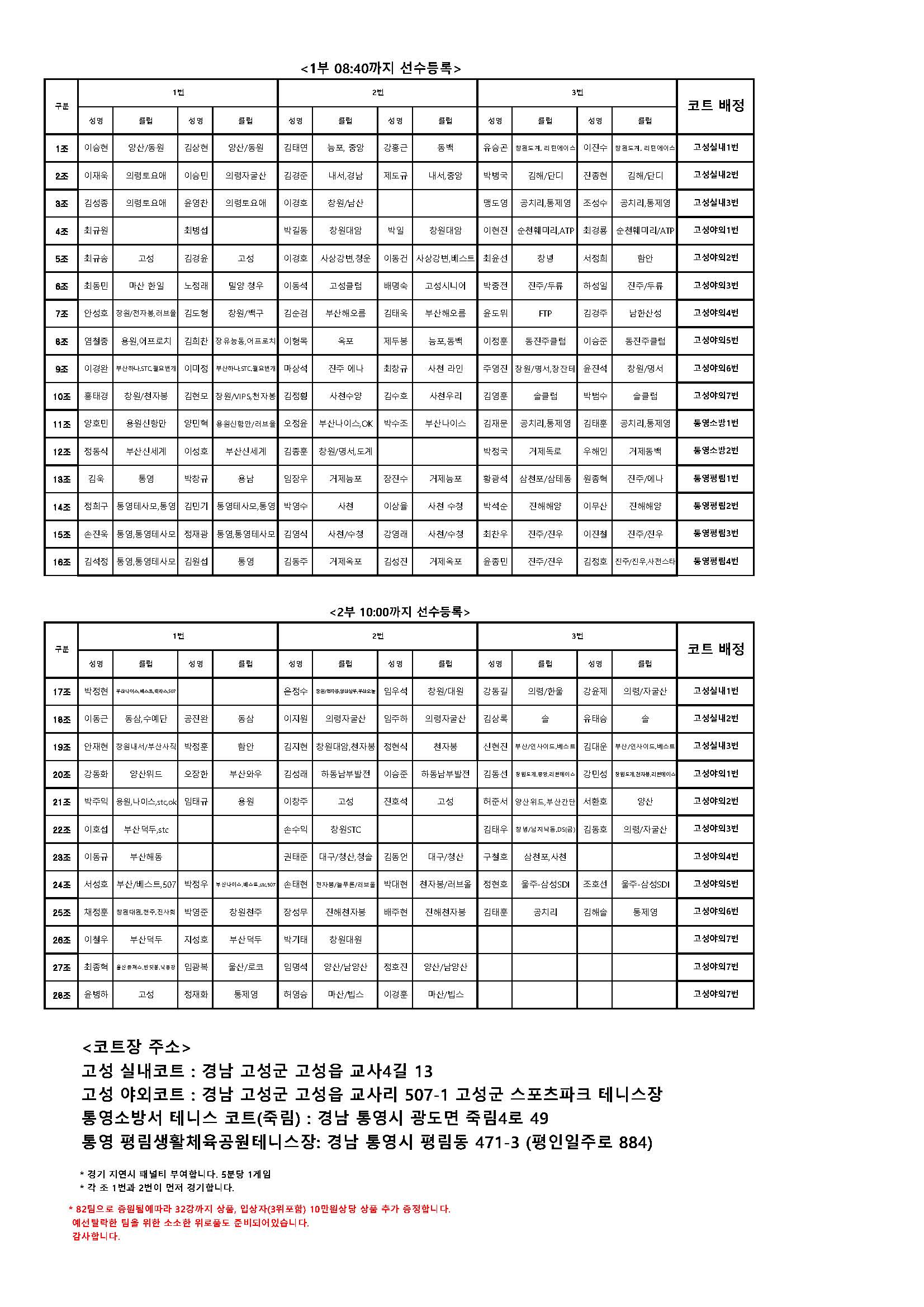 Á¦2ȸ ¾ç»ê½Ã Å״ϽºÇùȸ ¶óÀÌ¡½ºÅ¸ ³²ÀںΠ´ëÁøÇ¥[0]