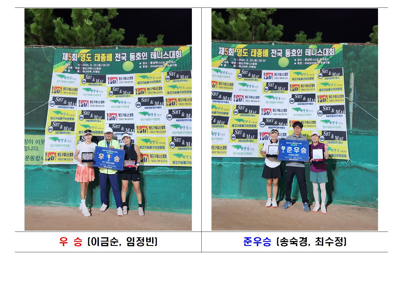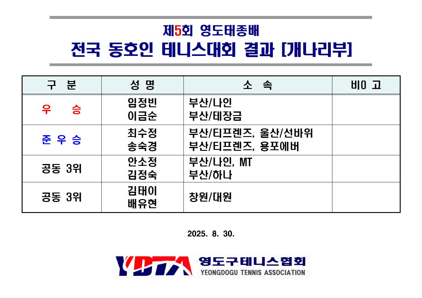 Á¦5ȸ ¿µµµÅÂÁ¾¹è Å״Ͻº´ëȸ(°³³ª¸®ºÎ) °æ±â °á°ú