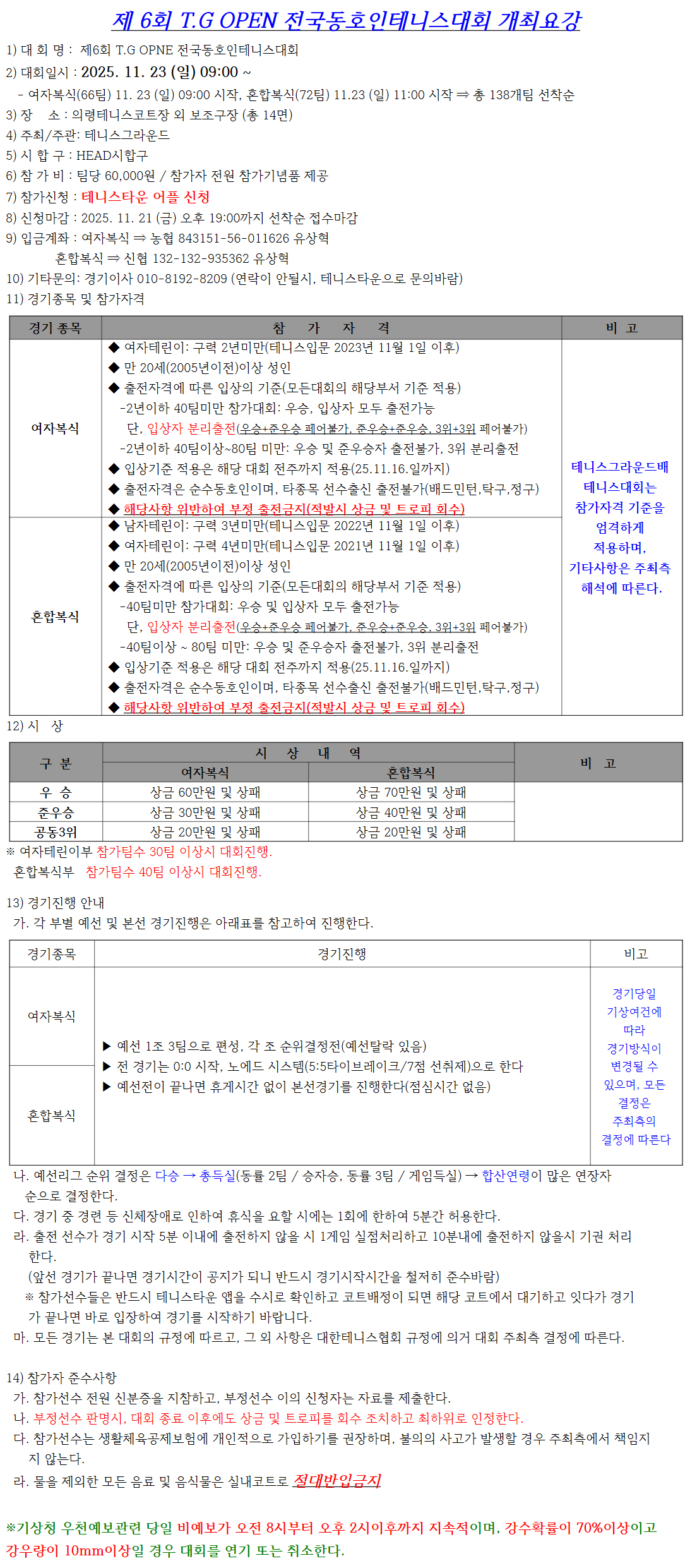 Á¦ 6ȸ T.G OPEN Àü±¹µ¿È£ÀÎÅ״Ͻº´ëȸ -11/23(ÀÏ)