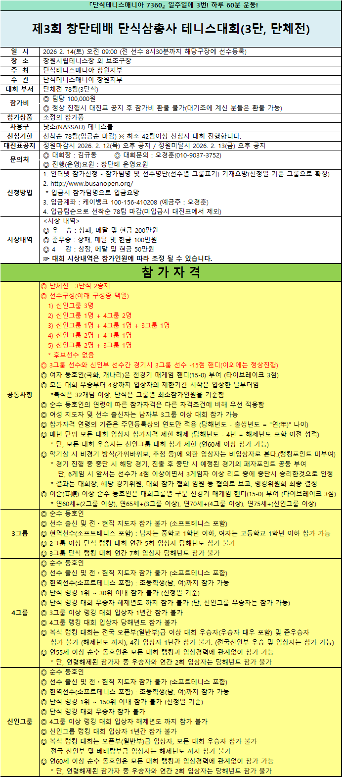 Á¦3ȸ â´ÜÅ×¹è ´Ü½Ä»ïÃÑ»ç Àü±¹ Å״Ͻº´ëȸ (3´Ü½Ä,´ÜüÀü) - 2/14(Åä)